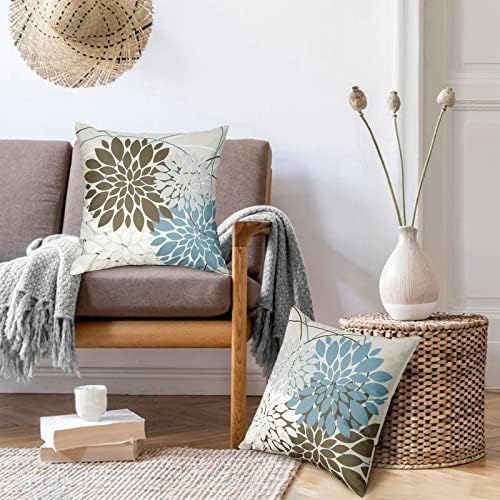 【Minimalist Style】 Beautiful geometric dahlia and elegant brown line will create an minimal art style for your home. Blue and brown throw pillows are very suitable for decorating the living room, bedroom, dorm, couch patio, porch swing, balcony, car, office etc.