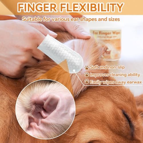 CONVENIENT FINGER DESIGN: Dog ear cleaner finger wipes are made of high-quality pads, soft and skin-friendly help remove ear wax and dirt gently and effectively. The texture on dog wipes design that will not hurt your dog’s ear canal, giving you precise control to target hard-to-reach areas of your dog’s ears, provides cleaner, more efficient solution.