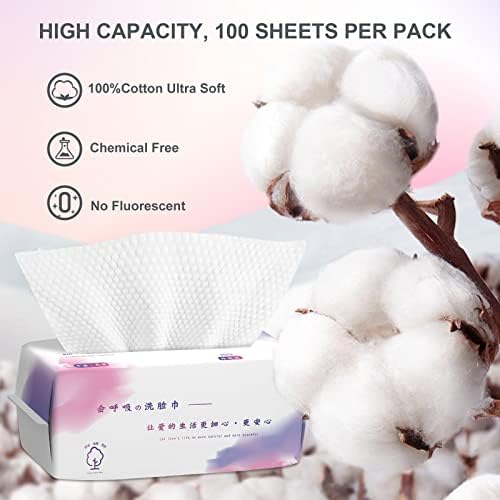Face Clean Towels, 100 Count Disposable Biodegradable Facial Wash Cloth for Sensitive Skin, Lint- free Facial Tissue for Cleansing, Skincare and Makeup Remover, Dry Wipes
