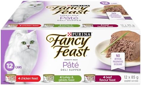 Fancy Feast Wet Cat Food, Deli Supper Pâté Variety Pack 85 g Cans (12 Pack)