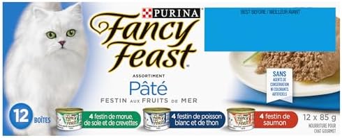 Fancy Feast Wet Cat Food, Seafood Supper Pâté Variety Pack 85 g Cans (12 Pack)