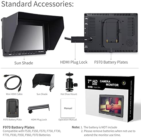FEELWORLD FW759 7 Inch DSLR Camera Field Monitor HD Video Assist Slim IPS 1280×800 4K HDMI 1080p with Sunshade