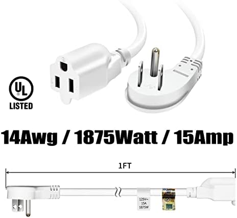 Length: 1 foot (12 inches)Plug: 3-prongRating: 125V/15A,1875WCord: (UL) SJT 3x14AWGVW-1 75℃ 300VIndoor Use Only