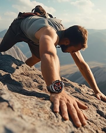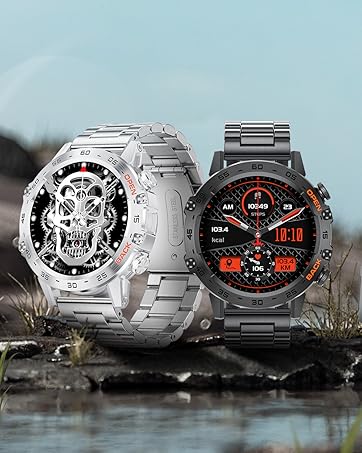 ⌚[Rugged Military Smartwatch] This smartwatch is made of high-quality metal case and the outer ring of the watch dial is reinforced with four screws, which is resistant to drops, pressure, water and dust. The screen is made of tempered glass with a Mohs hardness of 7H, which is hard, scratch-resistant and wear-resistant, while the outer ring is raised to further prevent the screen from being scratched. The smartwatch has passed several durability tests and works well even under harsh conditions.