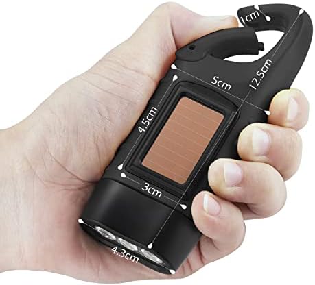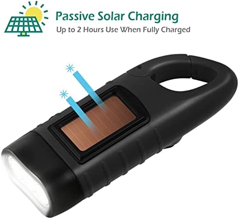 GeeRic 2-Pack Hand Crank Solar Powered Flashlight, Emergency Rechargeable LED Flashlight, Survival Flashlight, Quick Snap Carabiner Dynamo Flashlight Torch for Outdoor Sports, Black+Black