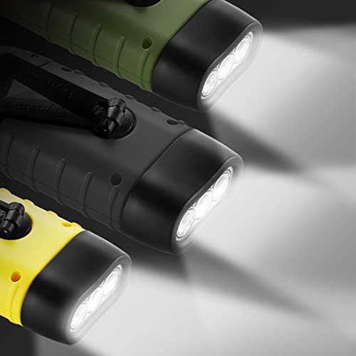 1. Emergency Hand Crank Torch: Built-In Rechargeable battery, conveniently generates power for more than 10 minutes’ lighting by 1 minute’s crank (basing one speed of two round per second).