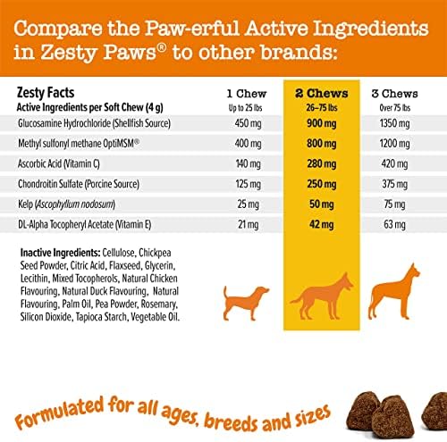 America’s #1 Selling Dog Supplement Brand on Amazon* – Superior Chewables for Fido’s Hip & Joint Health – Zesty Paws Mobility Soft Chews are a premium supplement that helps support hip and joint health for your canine pet.