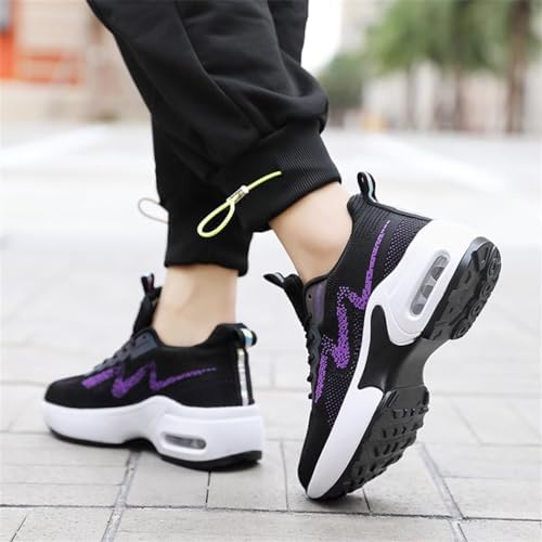 GSLMOLN Women’s Fashion Chunky Sneakers Lace-up Athletic Casual Mesh Knit Comfortable Breathable Walking Shoes 8 CM Height Increased Air Cushion Non Slip