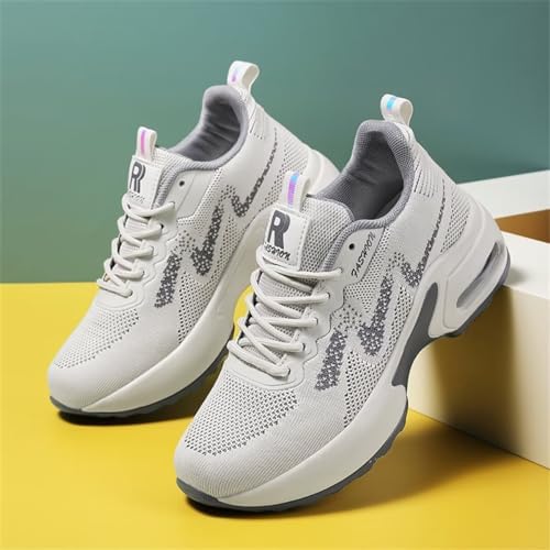 GSLMOLN Women’s Fashion Chunky Sneakers Lace-up Athletic Casual Mesh Knit Comfortable Breathable Walking Shoes 8 CM Height Increased Air Cushion Non Slip