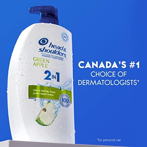 Say hello to your favorite everyday shower essential: Head and Shoulders Green Apple 2-in-1 formula. Ignite your senses and feel it working with every wash. Head and Shoulders’ unique formula works 7 surface layers deep to help fight dandruff at its source and maintain healthy hair. Combining powerful protection against flakes, itch,+ oil^ and dryness with a pH-balanced formula that’s gentle enough for everyday use, Green Apple Anti-Dandruff Shampoo and Conditioner 2-in-1 ensures that your scalp feels clean and healthy and your locks shine. Featuring a fresh green apple scent, Green Apple 2-in-1 cleans and conditions hair at once for an improved shower experience.Our unique formula, with zinc pyrithione, delivers 7 healthy scalp and hair benefits:1. Calms itching+2. Relieves irritation+3. Reduces redness+4. Removes flakes+^5. Fights dryness6. Controls oiliness^7. Beautiful hair* visible flakes; with regular use** based on volume of sales for personal use+ associated with dandruff^ washes away oil and flakes++ use as directed