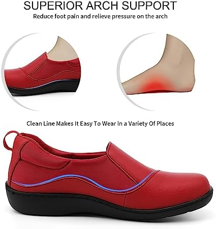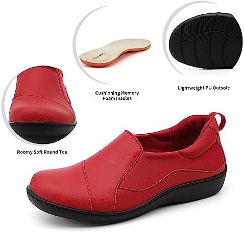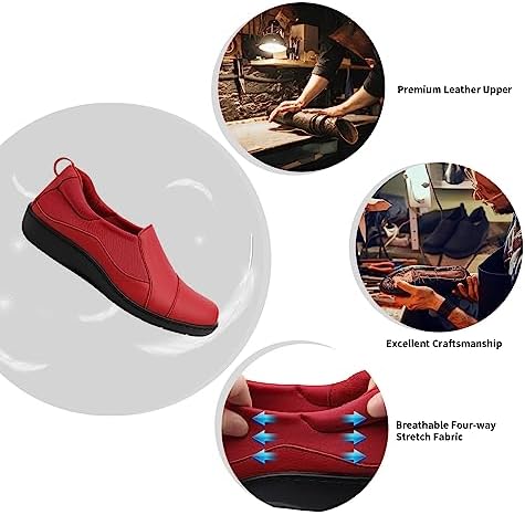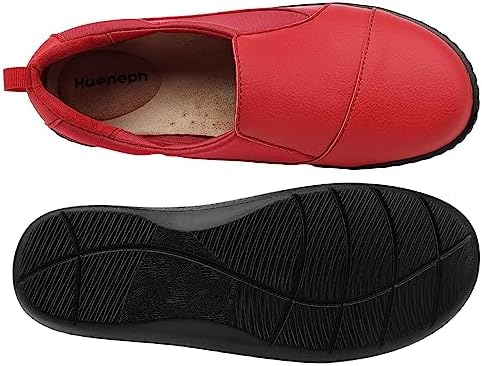 Hueneph Women’s Comfort Leather Loafers Cute Casual Slip On Lightweight Walking Flats Everyday Work Shoes