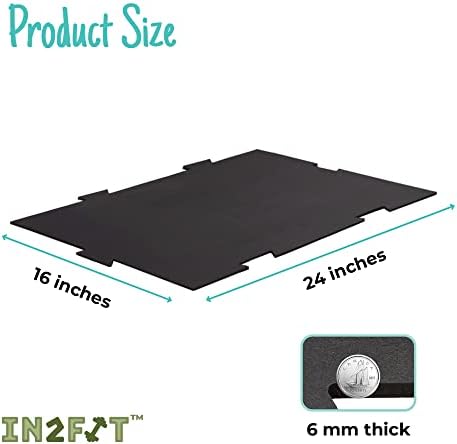 IN2FIT Interlocking Rubber Athletic Tiles – Rubber Floor Mats for Exercise Equipment, Weight Room Fitness Equipment, Interlocking Gym Flooring Tiles – 9 Piece, Black, 16″ x 24″, 6mm Thick, 24 Sq Ft