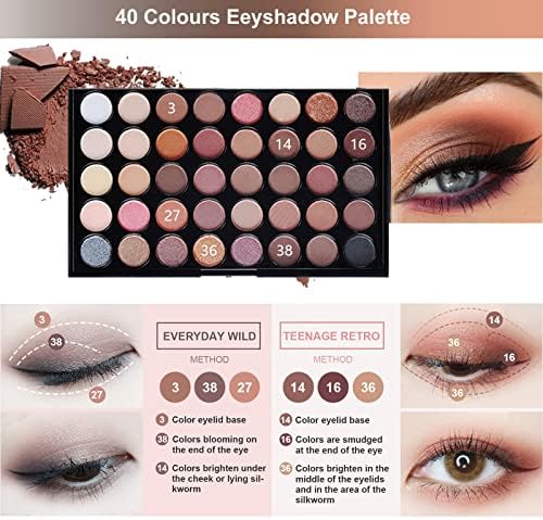 ❀Perfect Starter Set: All-in-one travel eyeshadow palette set is a best choice for starters and young girls to practice how to make up. Joyeee complete eye makeup kit contains 40 colors eyeshadow palette, mascara, eyebrow pencil, eyeliner pen, cosmetic brushes, etc. Your secret weapon to shape the perfect makeup, designed to be kind to skin of all ages.