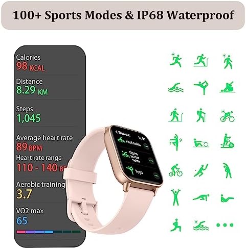 【100+ Sports Modes & IP68 Waterproof】With 100+ built-in sports modes and IP68 waterproof, the fitness tracker meets most sports needs for men and women. The activity tracker records calories burned, steps taken, distance covered, and workout duration. Access your fitness data to develop an effective exercise plan.