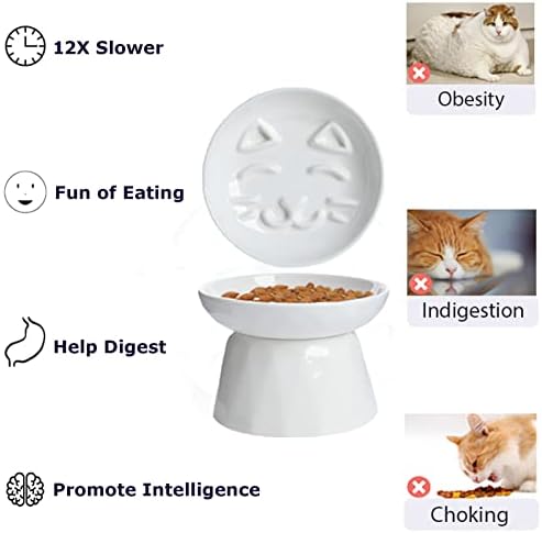 Kopmath Raised Slow Feeder Cat Bowl, Ceramic Elevated Cat Slow Feeder, Healthy Eating for Wet & Dry Food, Sturdy & Grippy, Pet Puzzle Food Plate, Prevent Vomitting Indigestion, Dishwasher Safe (White)