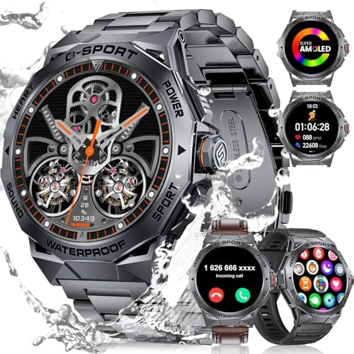 🏂🚴♂️【Your Personal Fitness Coach】This military smart watch supports over 120 different sports modes, including walking, running, cycling, fitness workouts, yoga, hiking, soccer, baseball, and more. The mens smart watch can accurately track steps, distance, calories burned, and other data, providing comprehensive insights into your daily activities. It can also assist in developing more scientifically based fitness plans, making it an ideal gift for friends and family.
