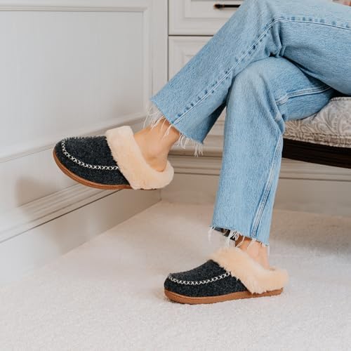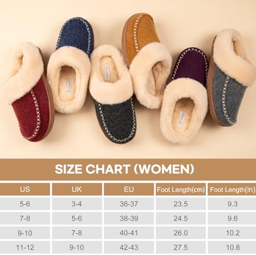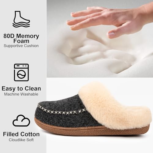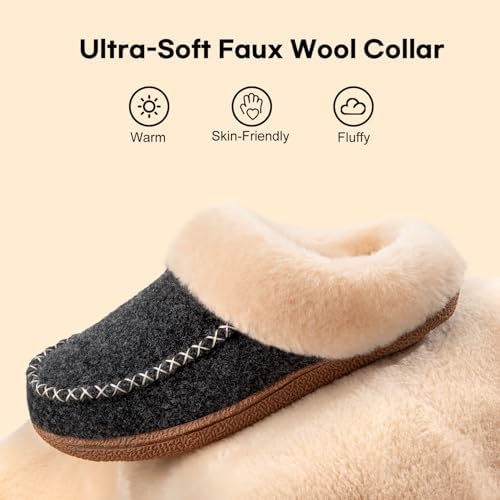 LongBay Women’s Moccasin Slippers Faux Wool Felt Slip-On Bedroom Clog Comfy Memory Foam Indoor Outdoor House Shoes with Fuzzy Collar