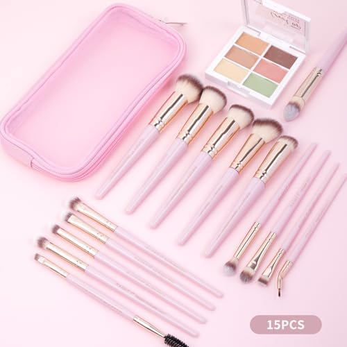 MAGEFY 15 Pcs Makeup Brushes with Case, Portable Makeup Brush Set Face Foundation Brushes Blending Concealers Blush Eye Brush Kit Travel Makeup Brushes(Pink)