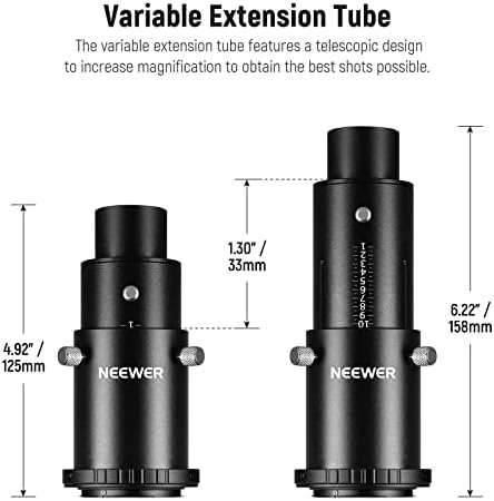 NEEWER 1.25” Variable Telescope Camera Adapter & 1.25″ Extension Tube Kit, Compatible with Nikon DSLR Cameras & Telescope Eyepiece for Prime Focus and Eyepiece Projection Astrophotography