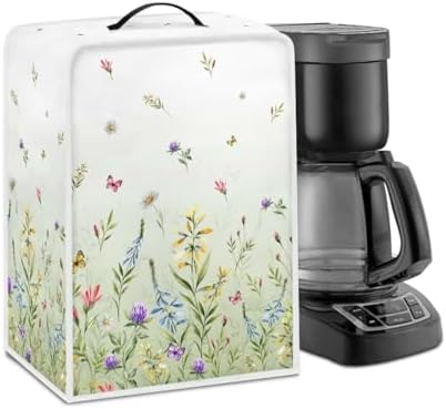 NETILGEN Coffee Maker Dust Cover Kitchen Countertop Appliances Cover Stain Resistant Dustproof Cover Universal Size for Home Indoor Office Kitchen Bar Cafe Decoration, Green Floral