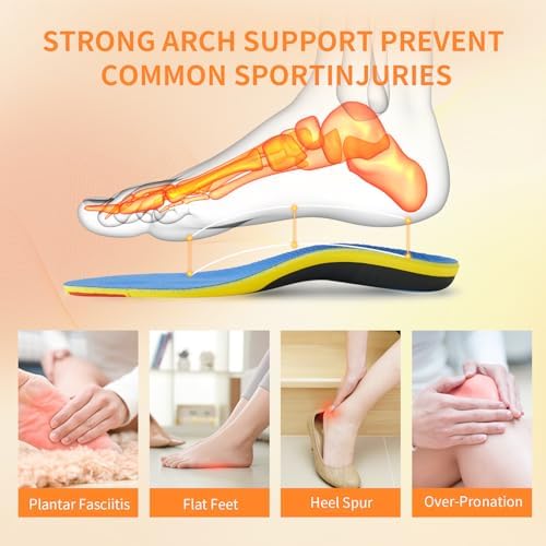 🦶【RELIEF&PREVETION】:This Plantar fasciitis insoles can prevent and relieve your pain.Best insoles for flat feet,whether you suffer from flat feet, plantar fasciitis, overpronation, achilles tendonitis,arthritis or other foot conditions,gel insoles for women and men provide relief prevetion from various foot-related issues.
