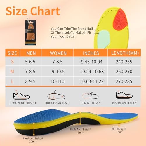 NISVITU high arch support insole is designed specifically to relieve foot fatigue and pain.insoles offer professional-grade orthotic support for shoes to fit and feel better.