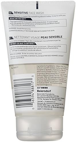 NIVEA MEN Sensitive Skin Face Wash – give your face optimal protection & care  NIVEA MEN Sensitive Skin Face Wash is a daily facial cleanser enriched with Vitamin E and chamomile specially designed for sensitive skin. Our soap-free face wash is gentle and guaranteed to leave your skin feeling soft and smooth while removing dirt and excess oil. Our formula contains no drying alcohol meaning it won’t dry out your skin leaving or leave it prone to breakouts.  Method of application: Apply to a cleansed face and gently massage the face wash into the skin. Rinse with lukewarm water. Dirt and excess oils will be removed leaving your skin cleansed and refreshed. Also suitable for softening beards for a better shave.