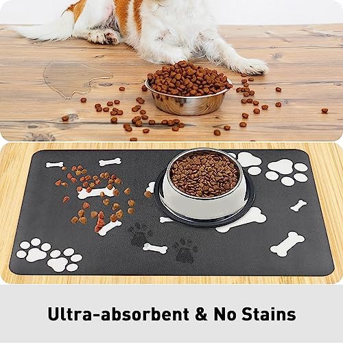 Pet Feeding Mats, Super Absorbent Non Slip Dog Cat Food Mat, Dirt Resistant Cat Dog Placemat Pet Water Dispenser Mat 24 x 16 Inches