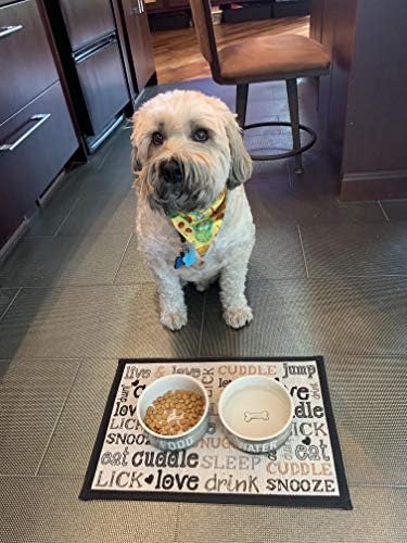PET RAGEOUS Designed Tapestry Placemat for Pet Feeding Station, 13-Inch by 19-Inch, Cuddle, Natural/Black