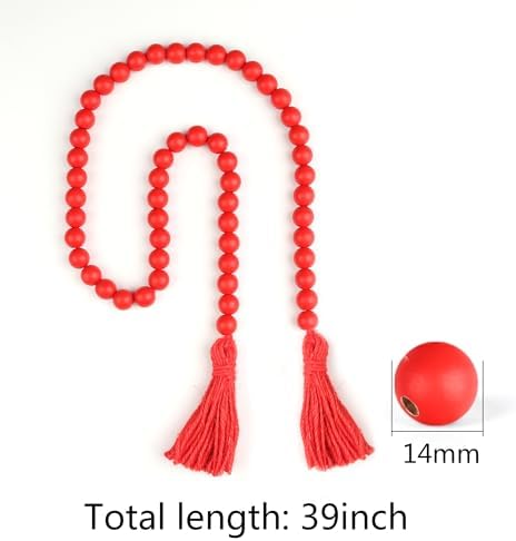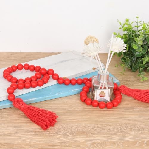 RAMIRABI Wood Beads Garland with Tassels Farmhouse Beads Rustic Prayer Beads Boho Beads for Boho Home Decor,Wall Hanging Decoration (Red)