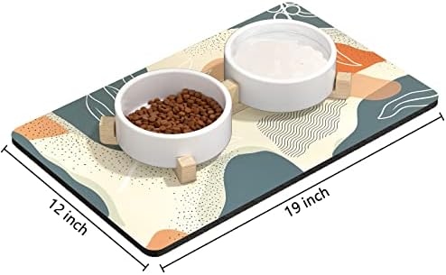 Rnivvi Dog Food Mat, 12″x19″ Boho Dog Mat for Food and Water, Absorbent Dog Cat Bowl Mat Protect Floors, Cute Pet Food Mats for Dog Cat, Anti-Slip Rubber Pet Feeding Mat, Abstract Leaves Pet Placemat