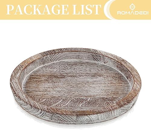 Romadedi Rustic Wooden Tray Candle Holder – Small Decorative Plate Pillar Candle Tray Wood for Farmhouse Dinning Table Kitchen Countertop Coffee Table Organizer Home Decor, Washedwhite,11inch