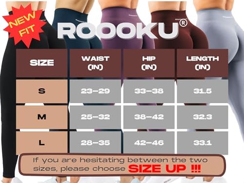 ROOOKU Gym Leggings for Women Squat Proof Workout Leggings Butt Lifting Scrunch Gym Booty Seamless 4 Way Stretch Yoga Pants
