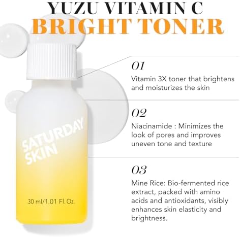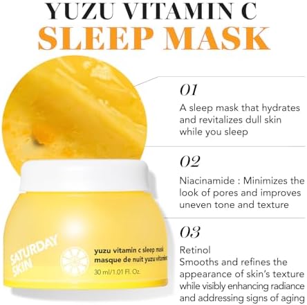 Saturday Skin 3-Piece Skin Care Set Yuzu Vitamin C Sleep Mask Yuzu Vitamin C Bright Toner and Eye Cream Overnight Facial Masks Korean Beauty Best Vitamin C Skincare trio