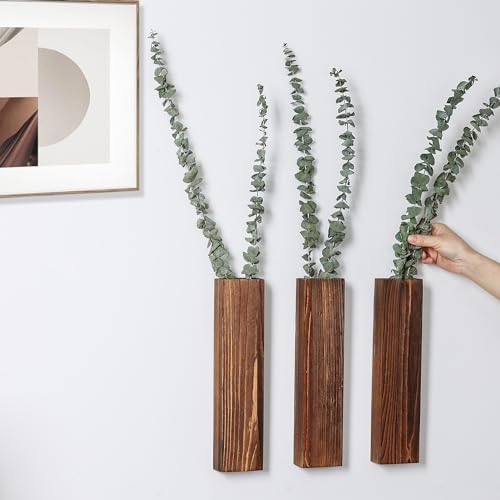 Sawoake Wall Planters- Modern Wood Wall Decor for Bedroom and Bathroom Contemporary Wooden Wall Planter Versatile Wood Home Decor for Dried Flowers and Faux Greenery Plants (Walnut, 3 Pack)