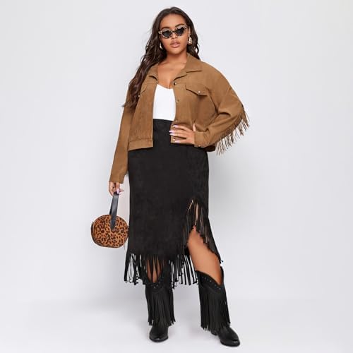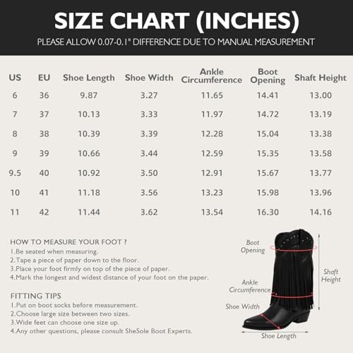 SheSole Women’s Wide Width Fringe Boots Mid Calf Stud Tassel Western Cowgirl Cowboy Boots