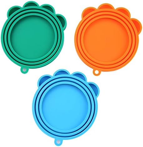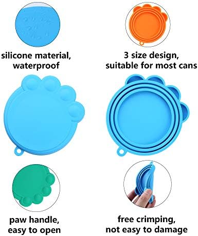 SLSON 3 Pack Pet Food Can Lids Universal Cat Dog Food Can Covers Cute Paw Design Can Lids 1 Fit 3 Standard Size, Blue, Green and Orange