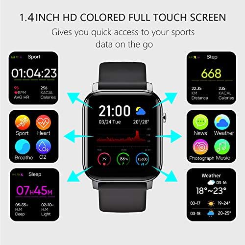 Smart Watch for Men Women with 1.4″ Touch Screen, Activity Fitness Tracker Heart Rate Sleep Monitor, 5ATM Waterproof Pedometer Smartwatch Step Counter for Android iOS Phone