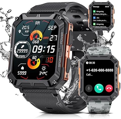 Be the first to review “Smart Watch,1.83″ HD Smart Watch for Men with 380mAh,Bluetooth Calls,123 Sport Modes/Spo2/Heart Rate Tracker IP68 Waterproof Orange Military Smart Watches for Android iOS 2 Straps”