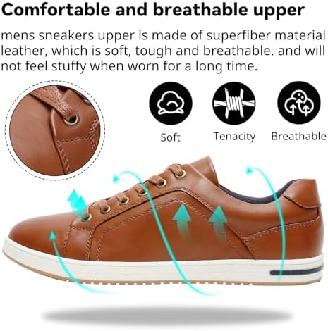 Mens sneakers upper is made of superfiber material leather, which is soft, tough and breathable. and will not feel stuffy when worn for a long time. Good cushioning, comfortable to wear for long periods of time.