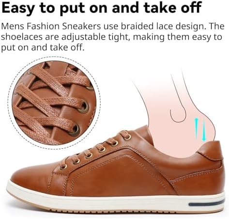 Classic color: These classic casual shoes for men come in three colors: white, black and brown.Easy to put on and take off:Mens Fashion Sneakers use braided lace design. The shoelaces are adjustable tight, making them easy to put on and take off.