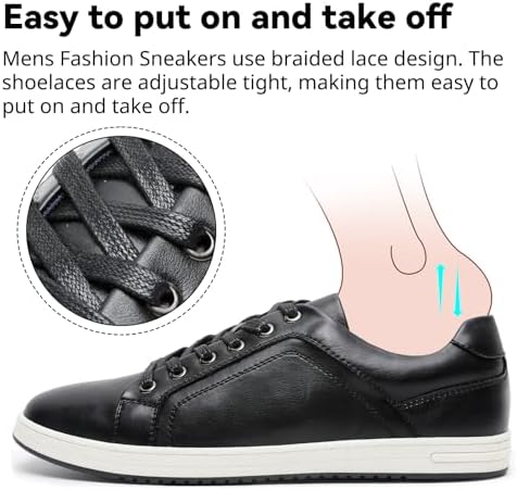 Classic color: These classic casual shoes for men come in three colors: white, black and brown.Easy to put on and take off:Mens Fashion Sneakers use braided lace design. The shoelaces are adjustable tight, making them easy to put on and take off.