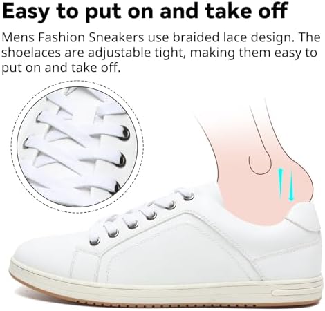 Classic color: These classic casual shoes for men come in three colors: white, black and brown.Easy to put on and take off:Mens Fashion Sneakers use braided lace design. The shoelaces are adjustable tight, making them easy to put on and take off.