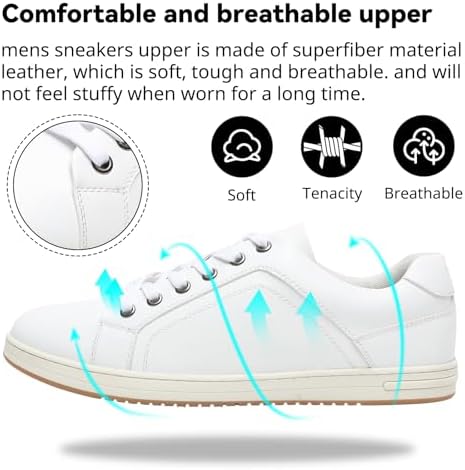Mens sneakers upper is made of superfiber material leather, which is soft, tough and breathable. and will not feel stuffy when worn for a long time. Good cushioning, comfortable to wear for long periods of time.