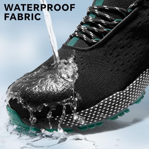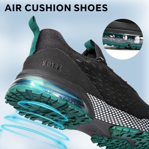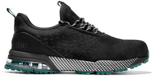 SPIEZ Safety Shoes for Men – Lightweight Composite Toe Work Shoes with Air Cushion, Waterproof Slip on Shoes for Men Women, Non Slip Shoes Black Green Size 5-12