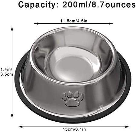 Stainless Steel Cat Bowl, 4 Pack Metal Dog Bowls for Food and Water, Non-Slip Pet Feeding Dish Bowl with Rubber Base for Indoor Cats Small Dogs