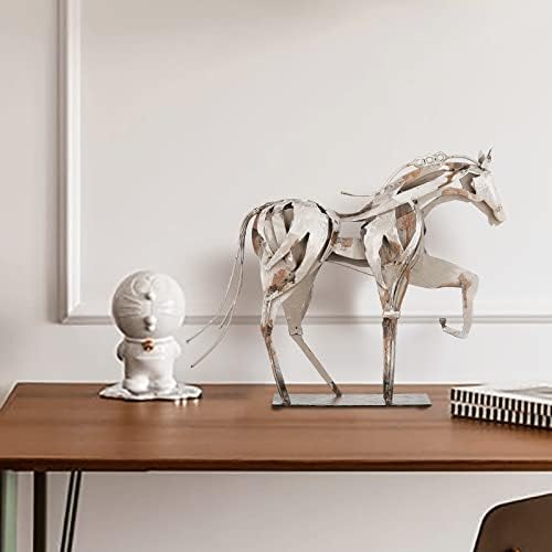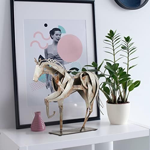 SunBlogs Art Metal Horse Statue Decor, 100% Handmade Strong Modern Horse Sculpture Handicraft, Rustic Metal Statue Decorations Gift for Home Office Desk Figurine (White)