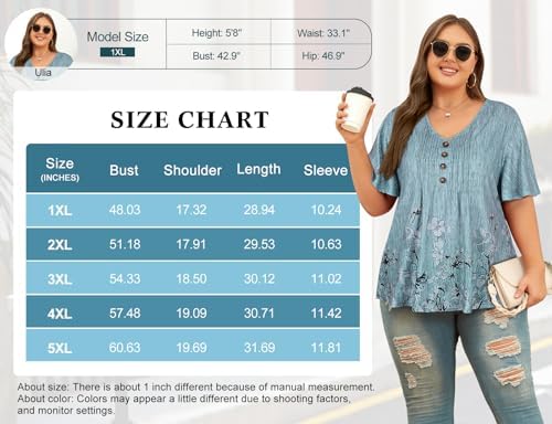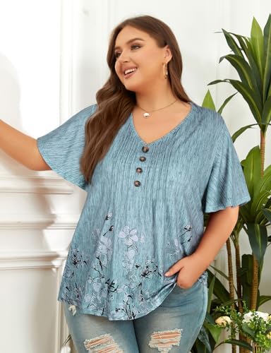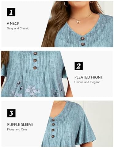 Tanst Sky Womens Plus Size Tops Ruffle Sleeve V Neck Shirts Casual Summer Tunic Blouses XL-5XL