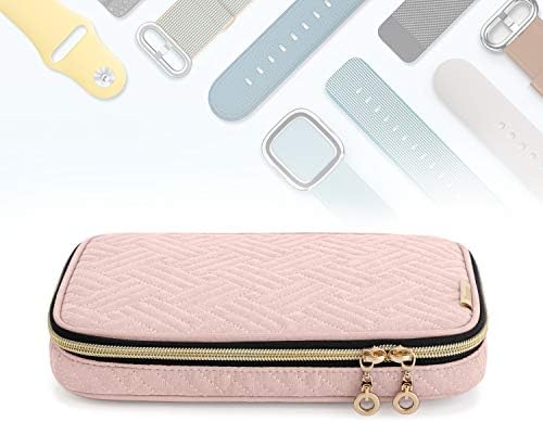 Teamoy Watch Band Storage Case Holds 12 Watch Straps, Travel Organizer Bag Compatible for All Series Apple Watch Bands or Smart Watch Bands, Misty Rose