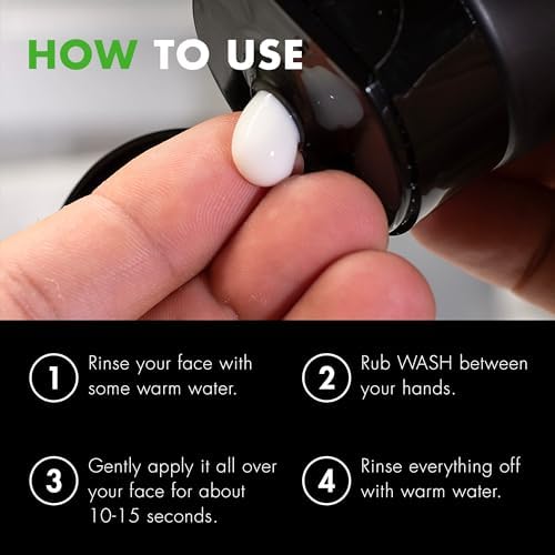 How to Use: First, rinse your face with some warm water. Then squeeze a nickel-size amount of WASH onto your fingers. Briefly rub your hands together to spread it out, then gently apply it all over your face for 10-15 seconds, avoiding your eyes and mouth. After cleansing, rinse off with more water. Use once in the morning and at night.